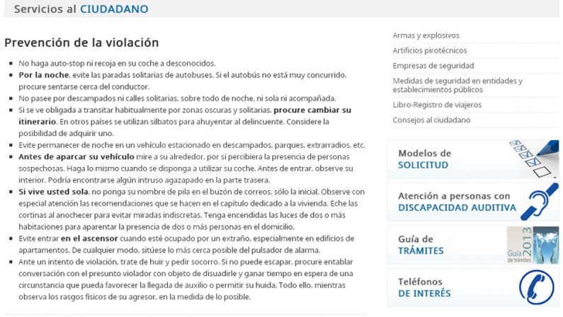 El Ministerio del Interior, en sus Servicios al CiudadanO se despacha con unos consejoa para prevenir la violación. En un alarde de machismo atávico responsabiliza a las mujeres del peligro potencial de ser violadas en lugar de plantearse cómo afrontar un problema, el de las agresiones sexuales con dosis de sensibilización y de eficaces amenazas a los agresores.